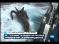 en Madrid contra el sacrificio de delfines en Japón. Según los