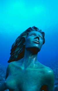 conocidas esculturas de las sirenas de bronce subacuáticas en lugares de